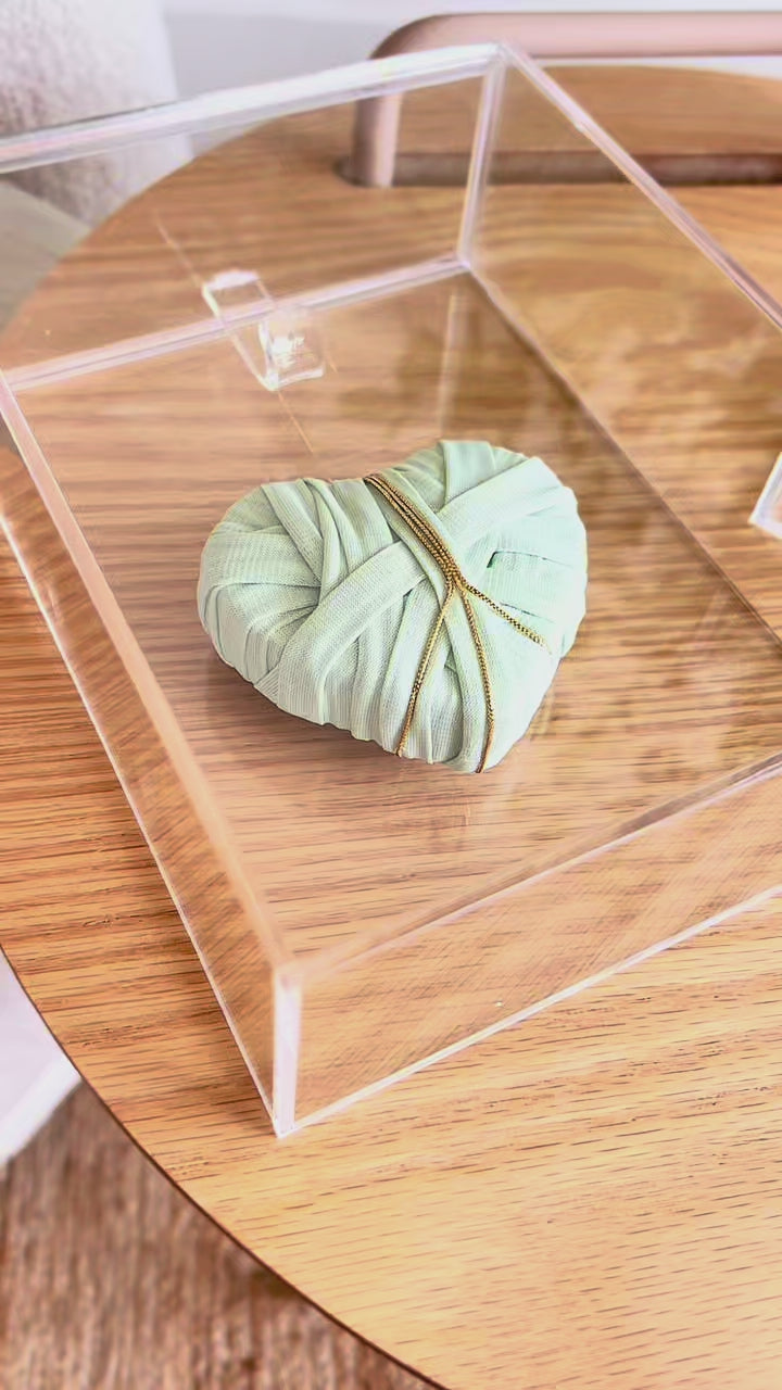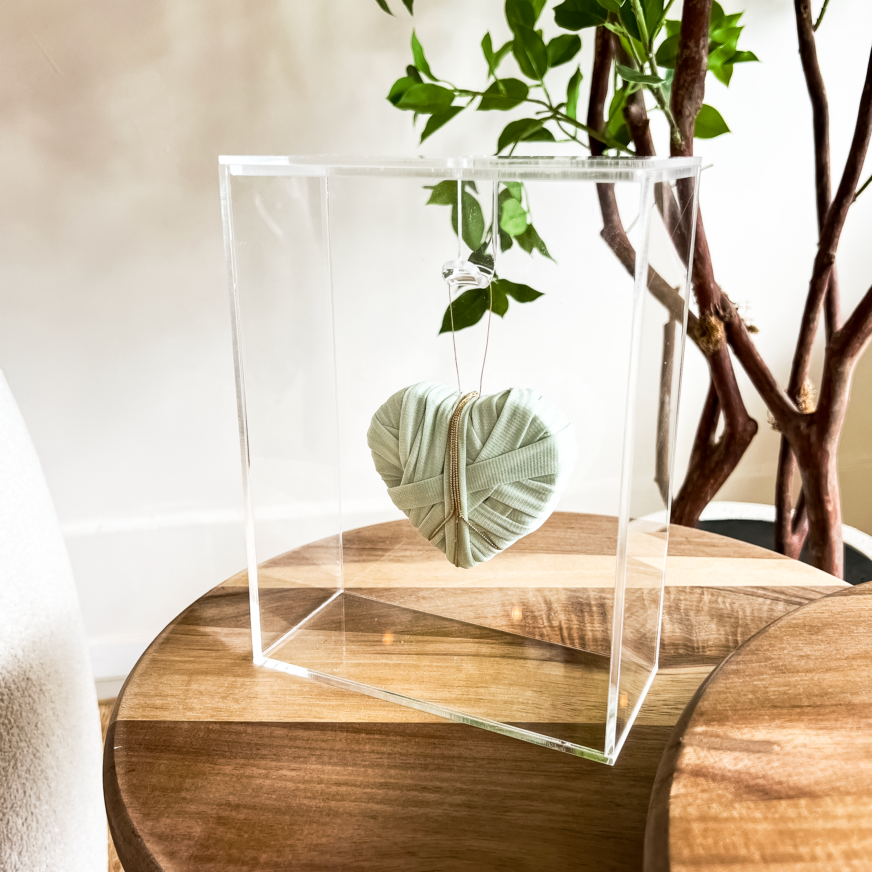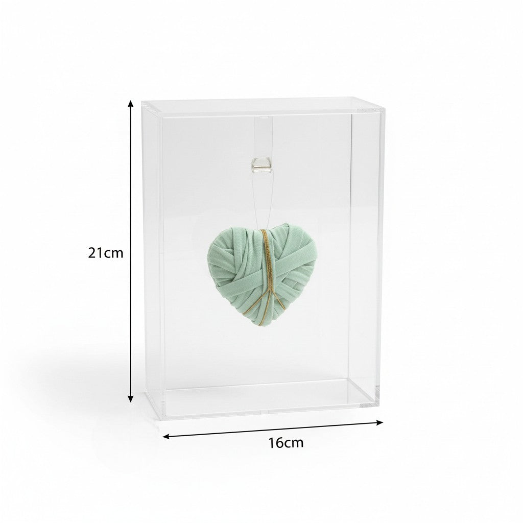 Produto: Caixa Acrílica com Coração Verde Claro em Fio Dourado