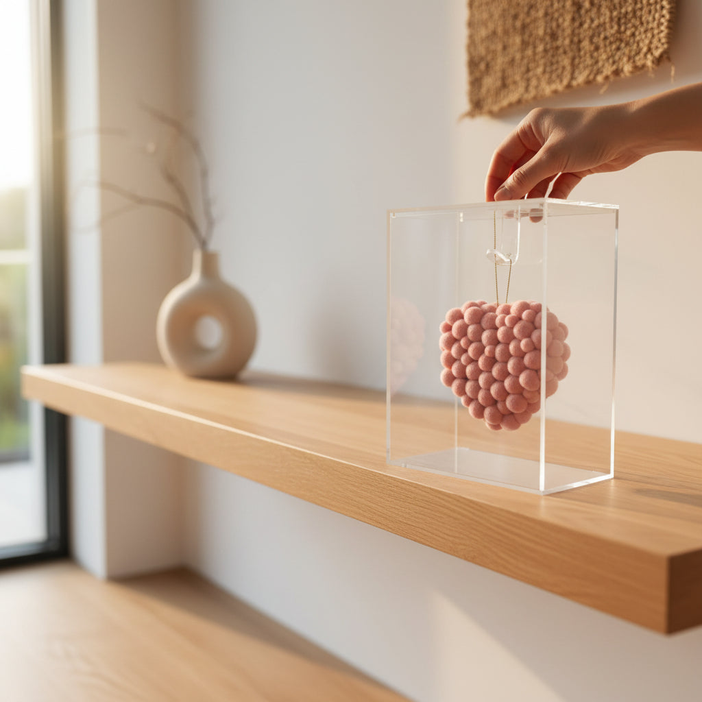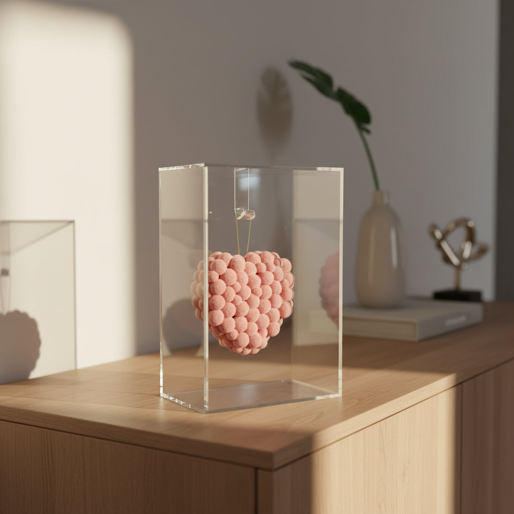 A Caixa Acrílica com Coração Rosa Claro em Pelúcia é perfeita para quem deseja eternizar sentimentos de forma doce e especial. Com visual leve e contemporâneo, ela une a transparência do acrílico à suavidade da pelúcia, criando um contraste encantador que transforma o afeto em decoração.