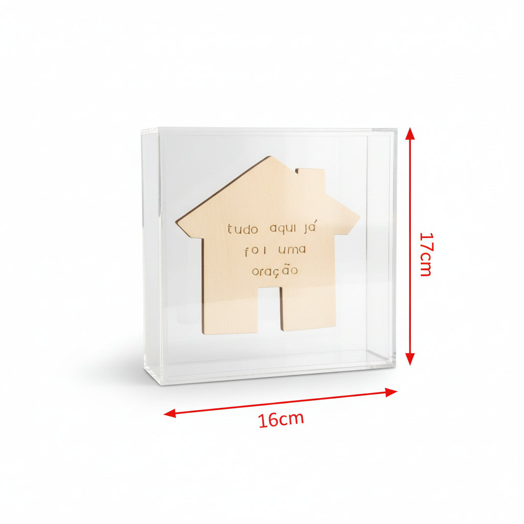 Caixa Acrílica c/ Relicário Decorativo Casinha Frase "Tudo Aqui Já Foi uma Oração" - 20x20cm