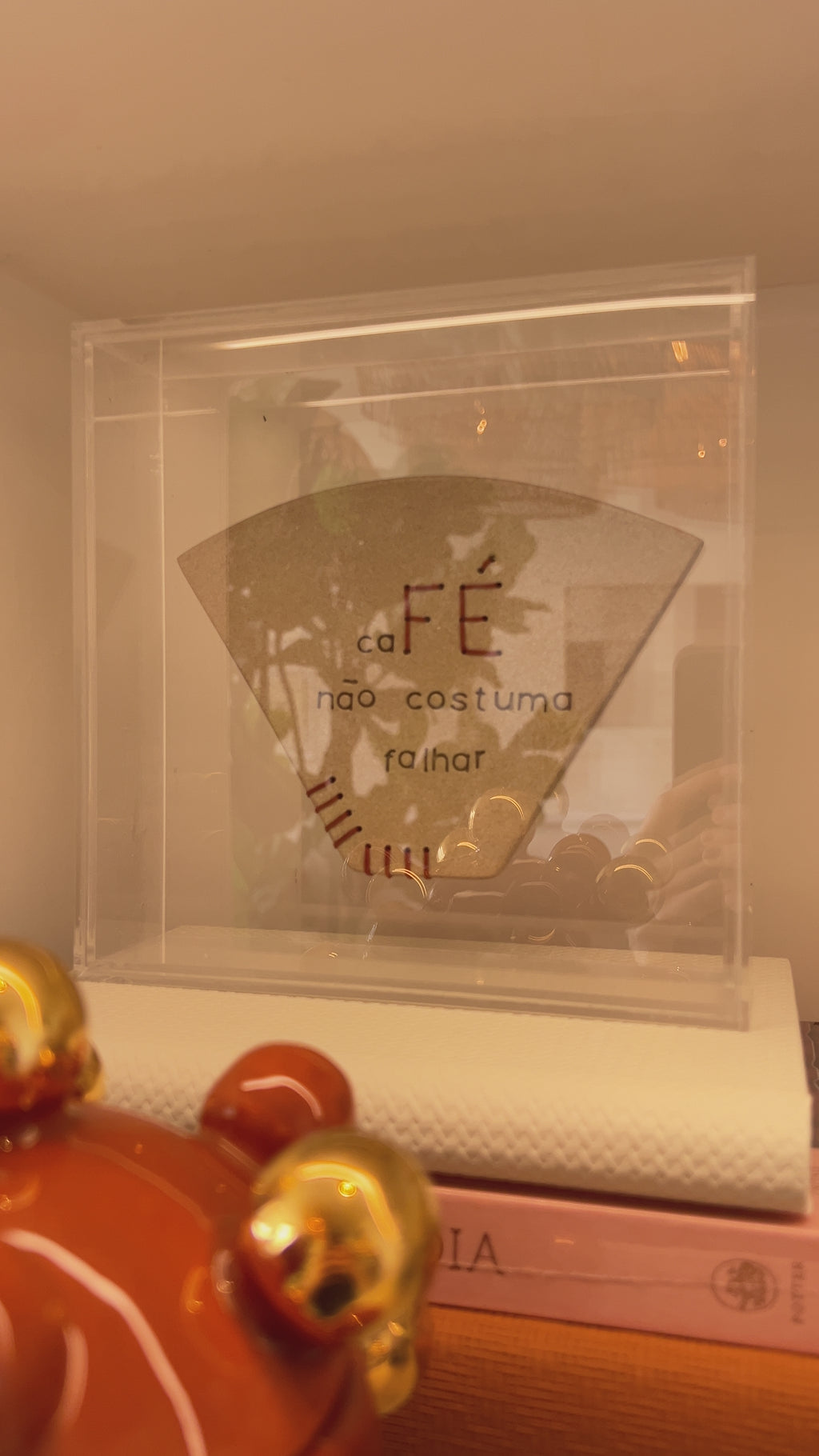 Caixa Acrílica c/ Relicário Decorativo Coador Frase "CaFÉ não Costuma Falhar" - 20x20cm