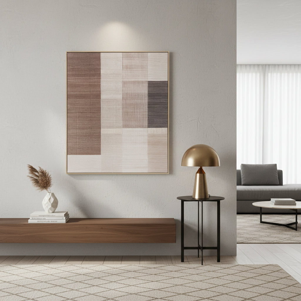 O Quadro em Canvas Quadriculado Neutro II é uma peça decorativa que traz equilíbrio, elegância e modernidade ao ambiente. Com estampa quadriculada em tons neutros, ele adiciona textura visual de forma sutil, sendo ideal para composições sofisticadas e atemporais.