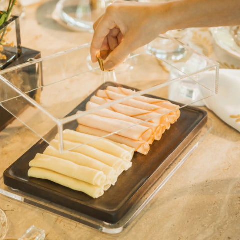 O porta frios Alenya traz a beleza da madeira natural para a sua mesa, sendo ideal para servir queijos, frios e petiscos com sofisticação e um toque rústico-contemporâneo.