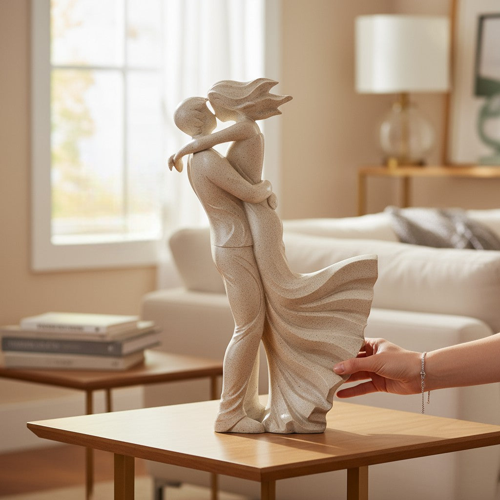 Representando o amor e a conexão, esta escultura de casal possui acabamento fosco e linhas suaves. Um objeto de decoração simbólico e sofisticado, ideal para mesas ou aparadores.
