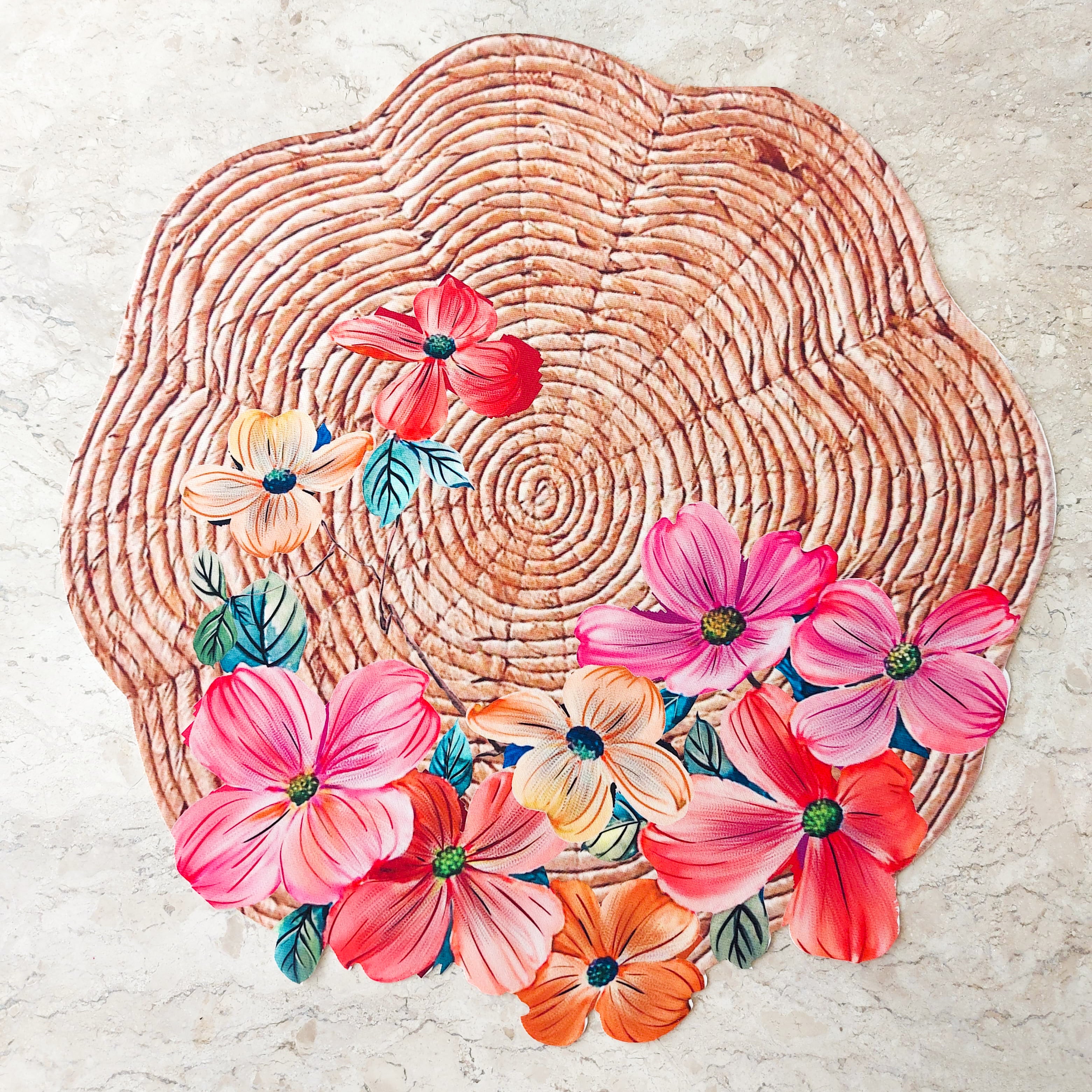 Jogo Americano Rústico Flowers 3D (4 Peças) - 44cm