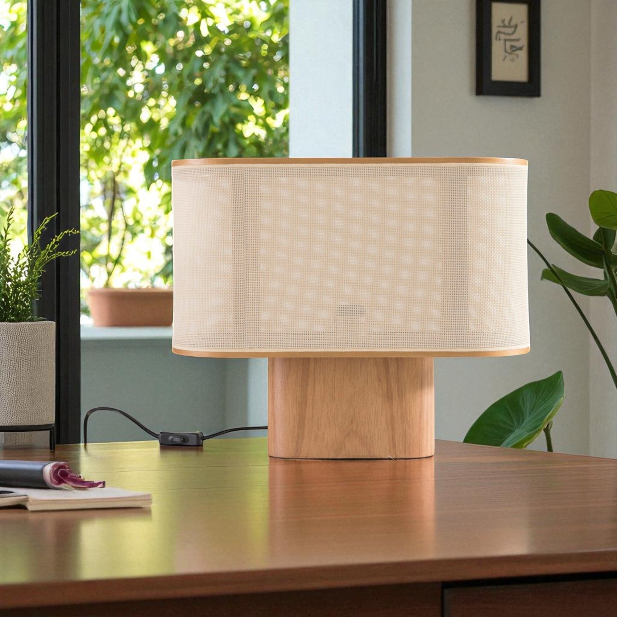 Abajur Elíptico c/ Cúpula em Tela Sintética - 38cm