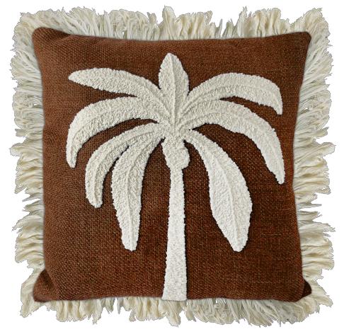 Inspirada na natureza, essa almofada em linho terracota apresenta um bordado bouclé de coqueiro, trazendo um charme tropical e elegante ao ambiente.