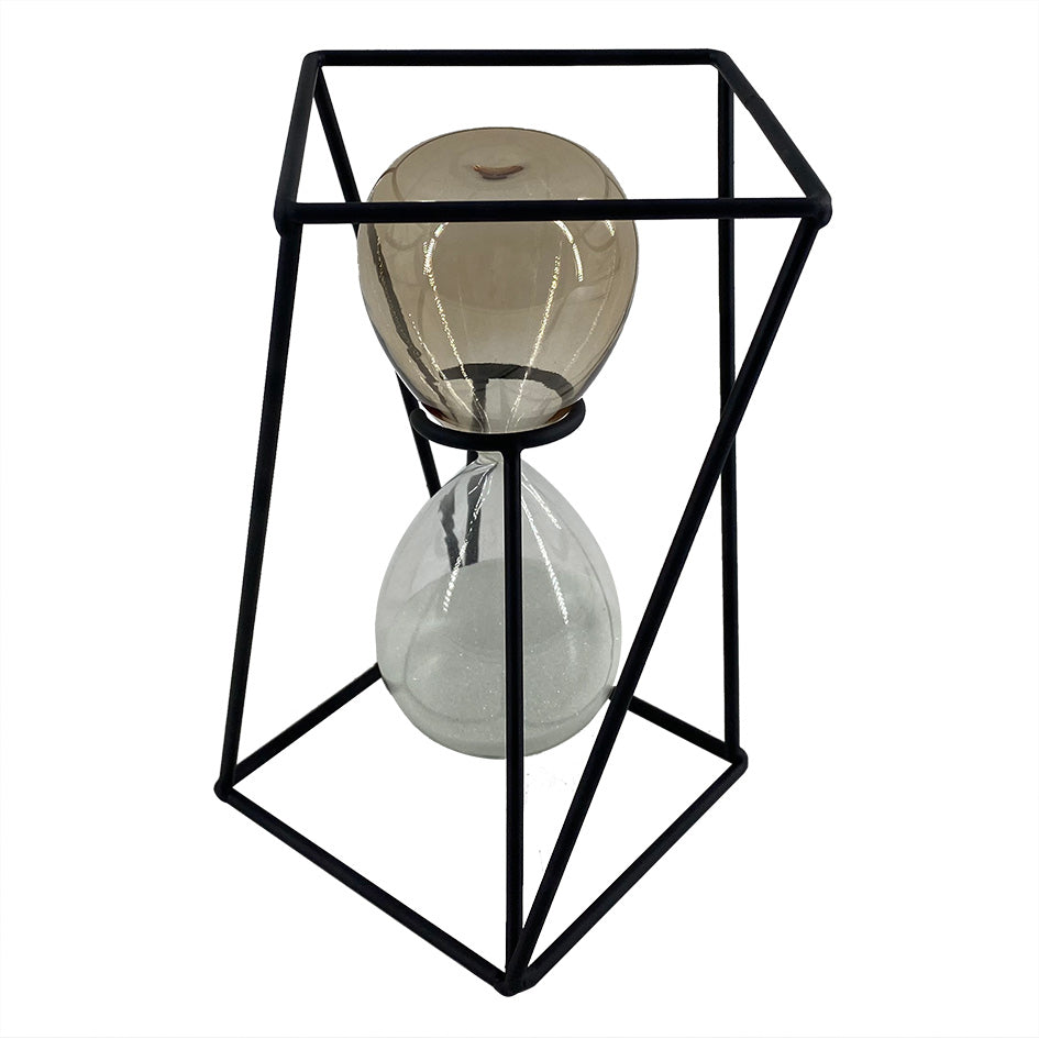 Ampulheta em Metal e Vidro Fumê - 12.5x23cm