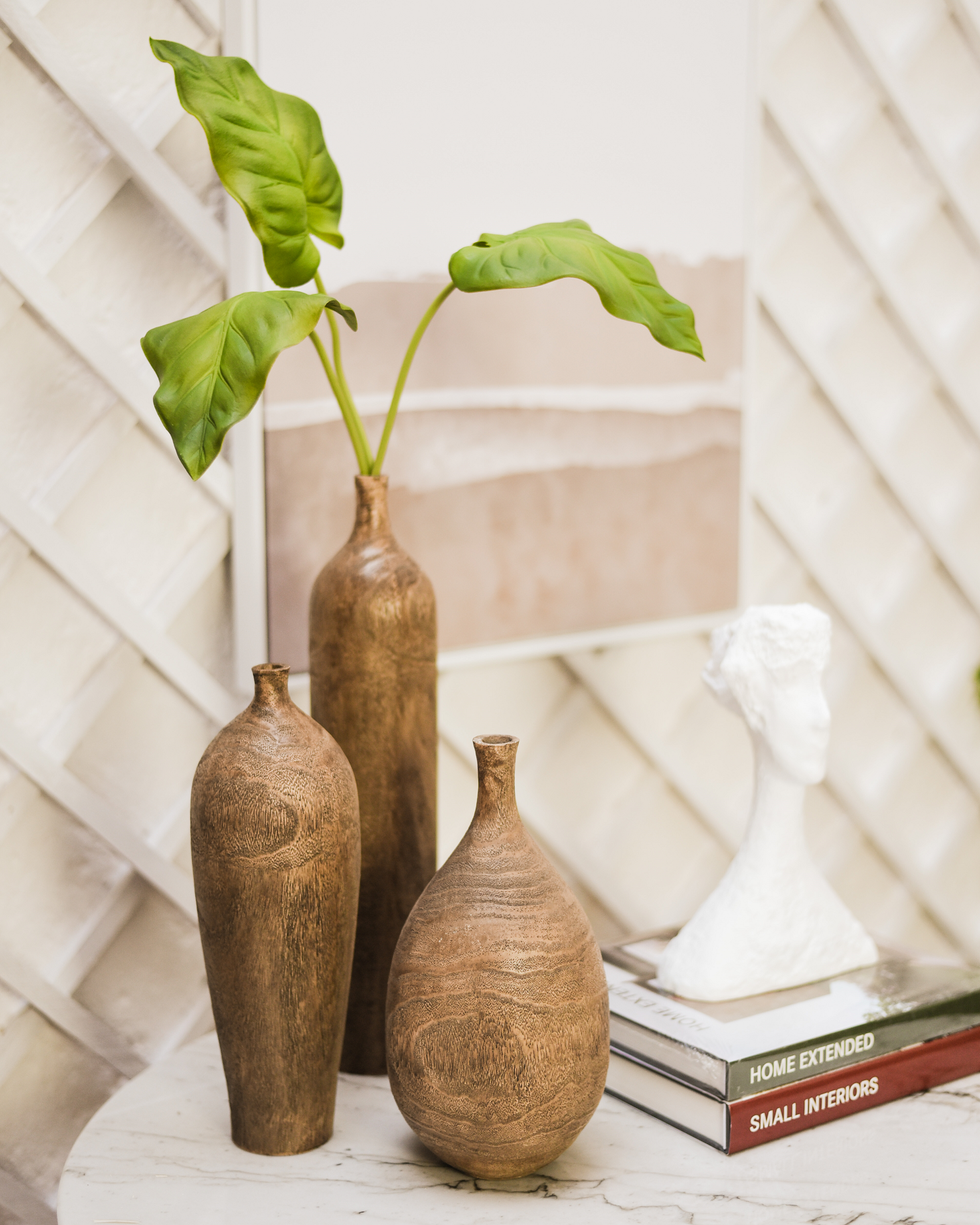 Apostar em formas, texturas e cores neutras sustentam o equilíbrio de seu lar. Além de que, vasos em cerâmica concedem uma composição harmoniosa e acalentada em seu ambiente.